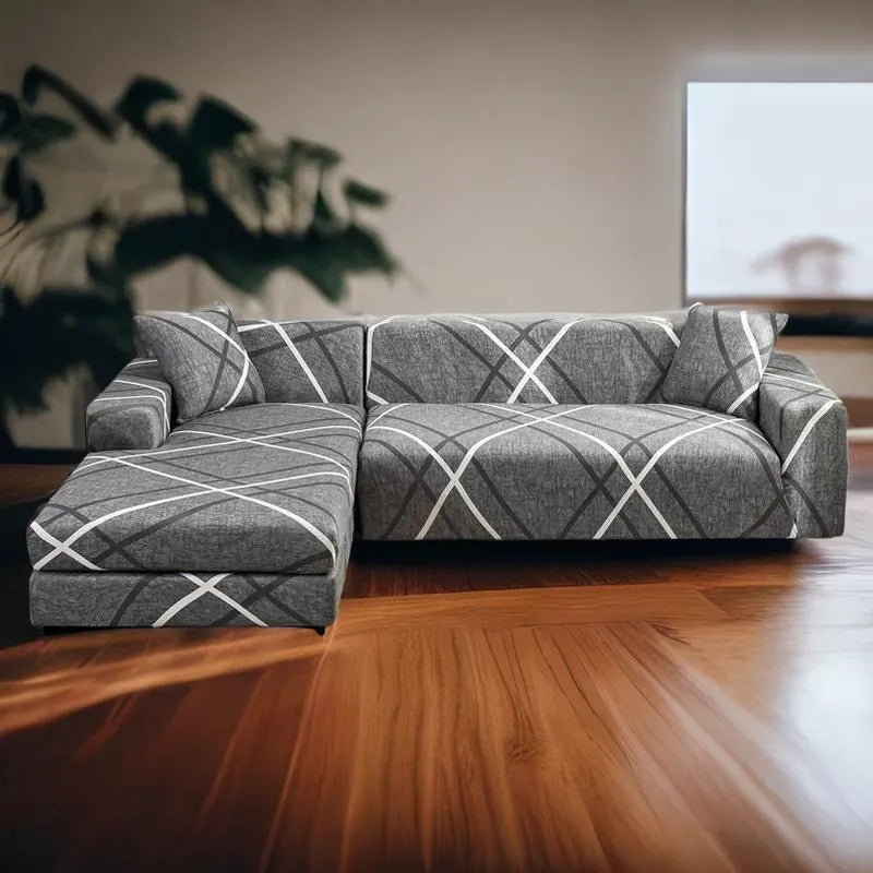 Découvrez notre Housse de canapé à motifs gris rayé blanc, disponible en stock sur notre site chacunsahousse.fr. Cette housse de canapé de qualité apportera une touche de modernité et d'élégance à votre intérieur.